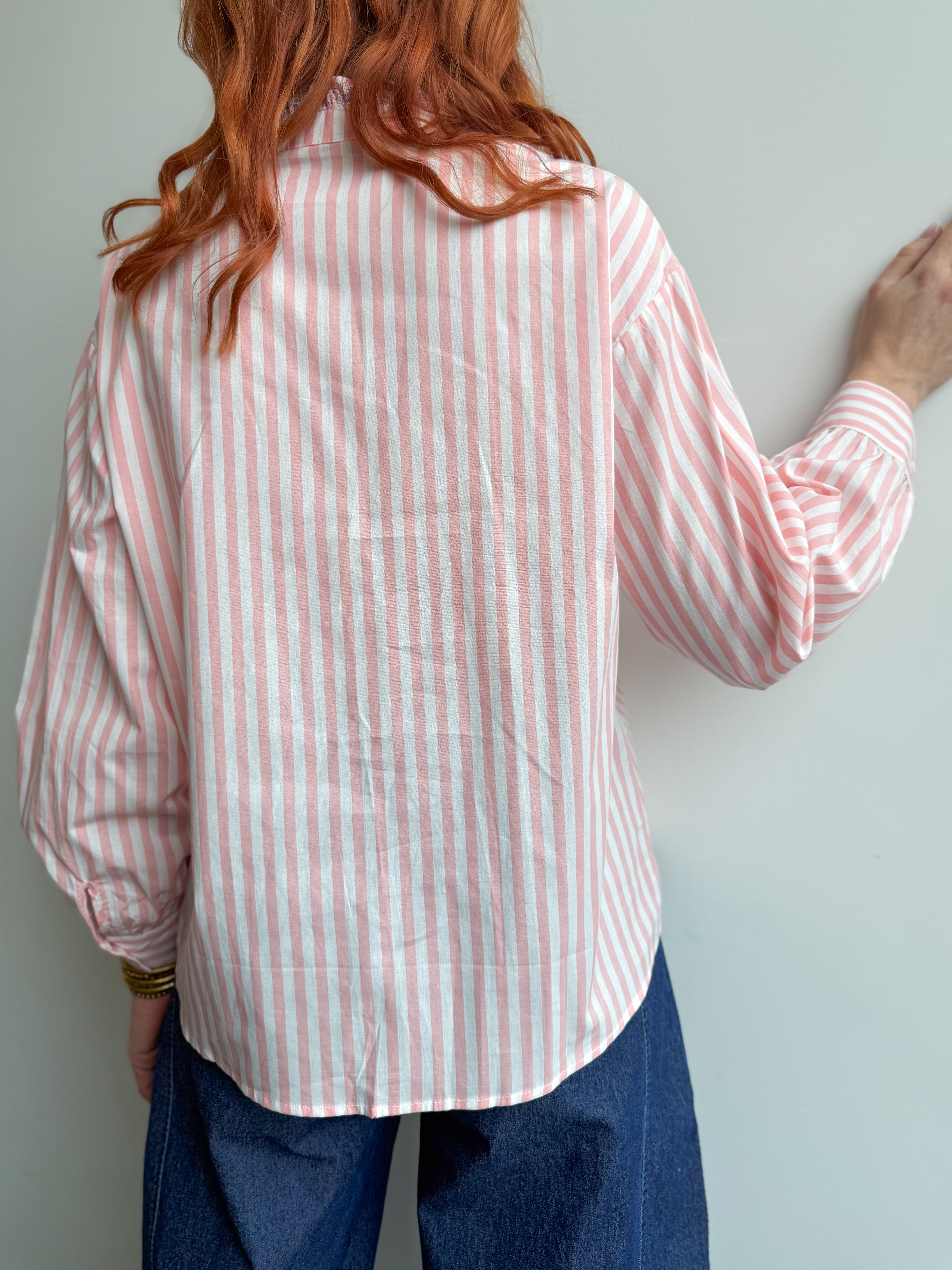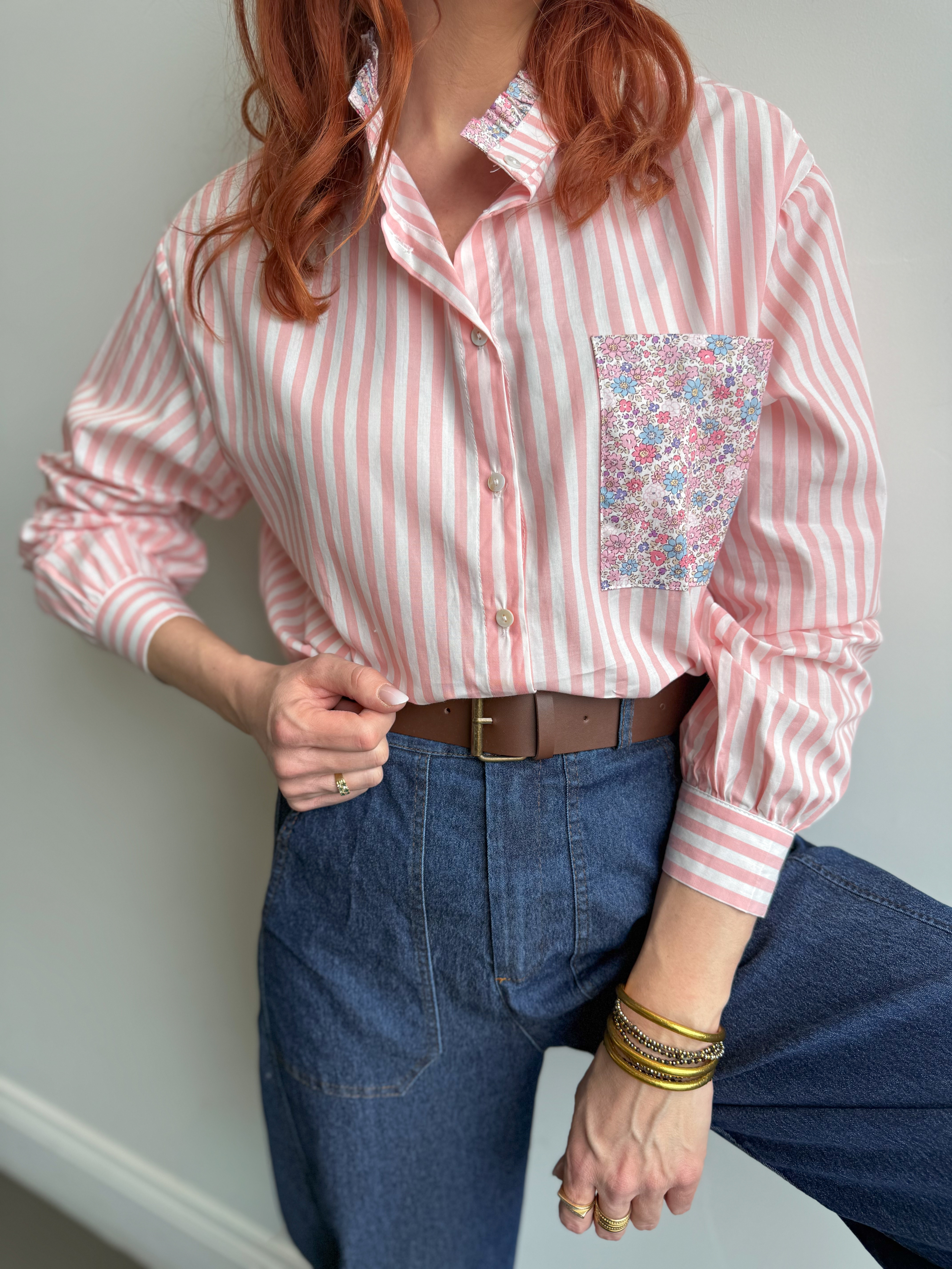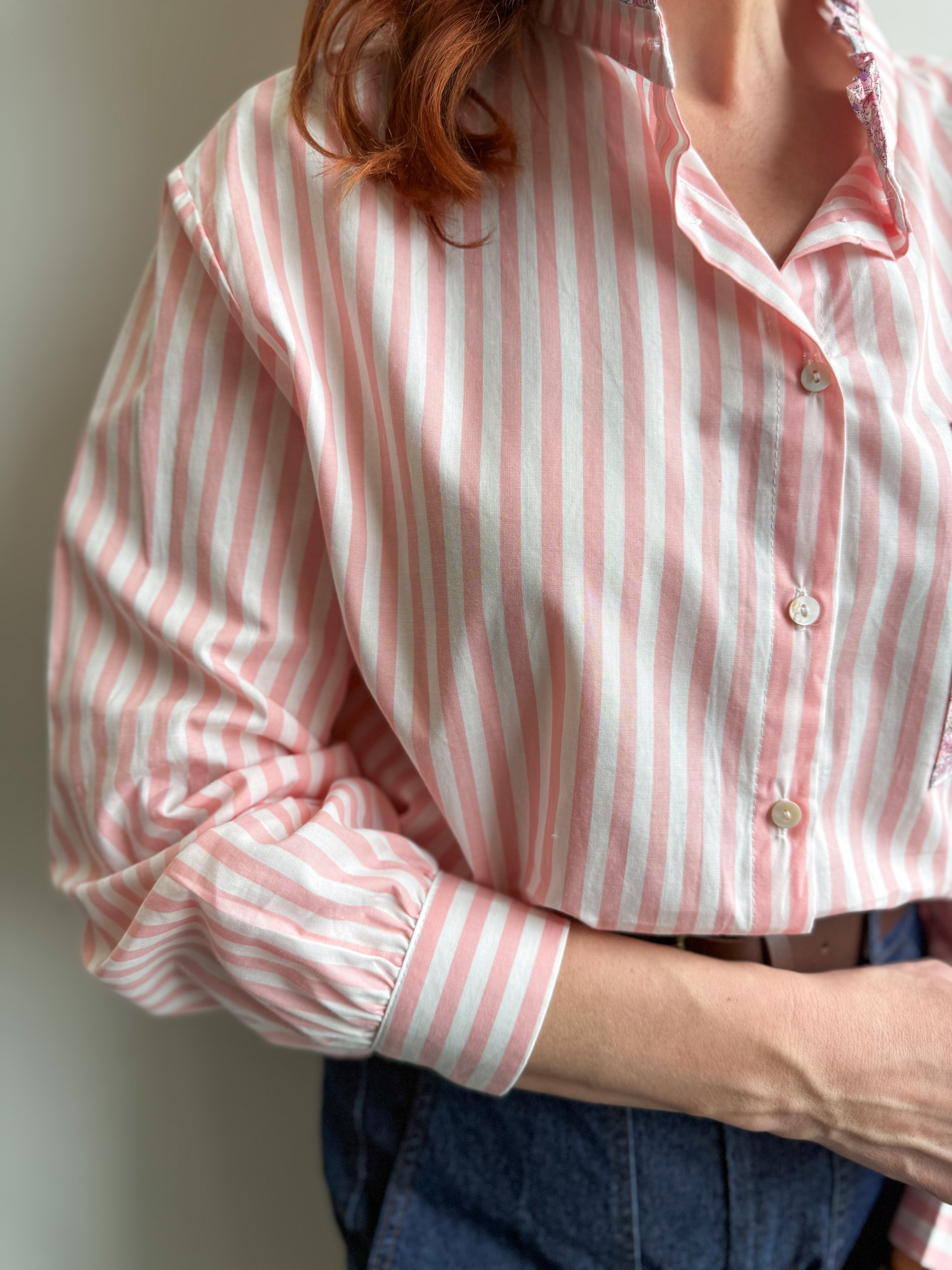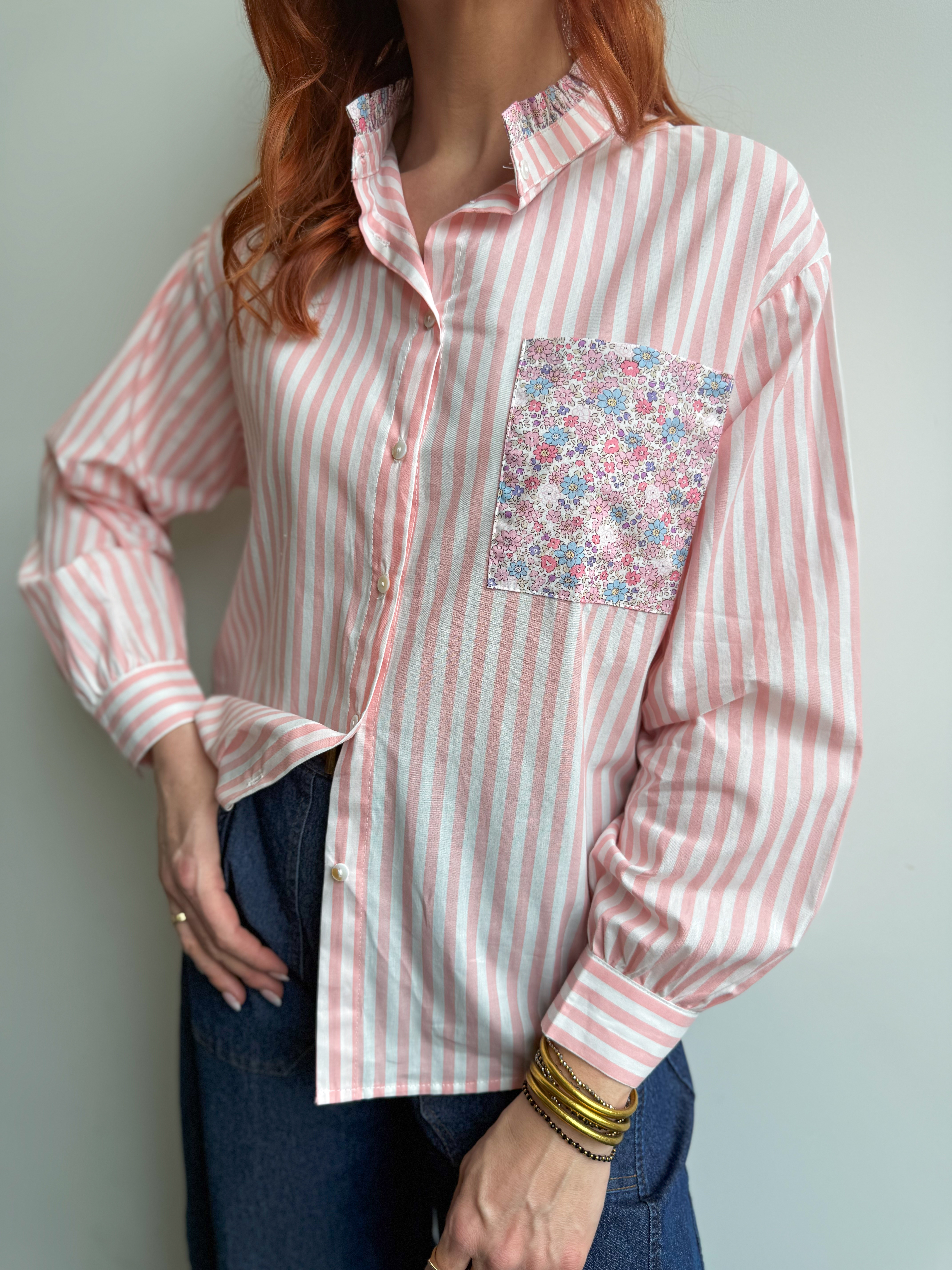Notre chemise Will rayée rose se distingue par ses détails fleuris délicats qui apportent une touche originale et féminine.