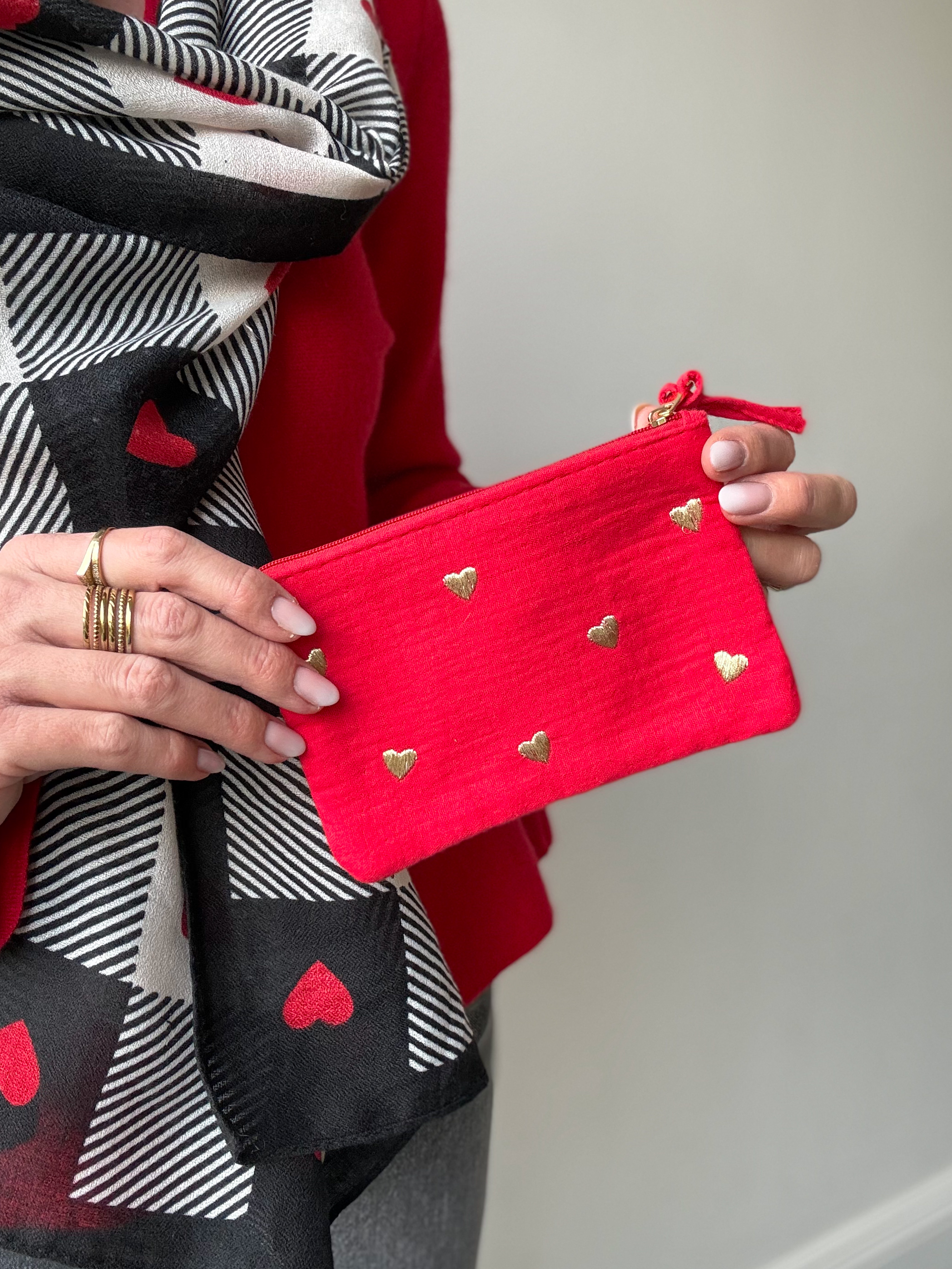 • Pochette cœurs gold rouge